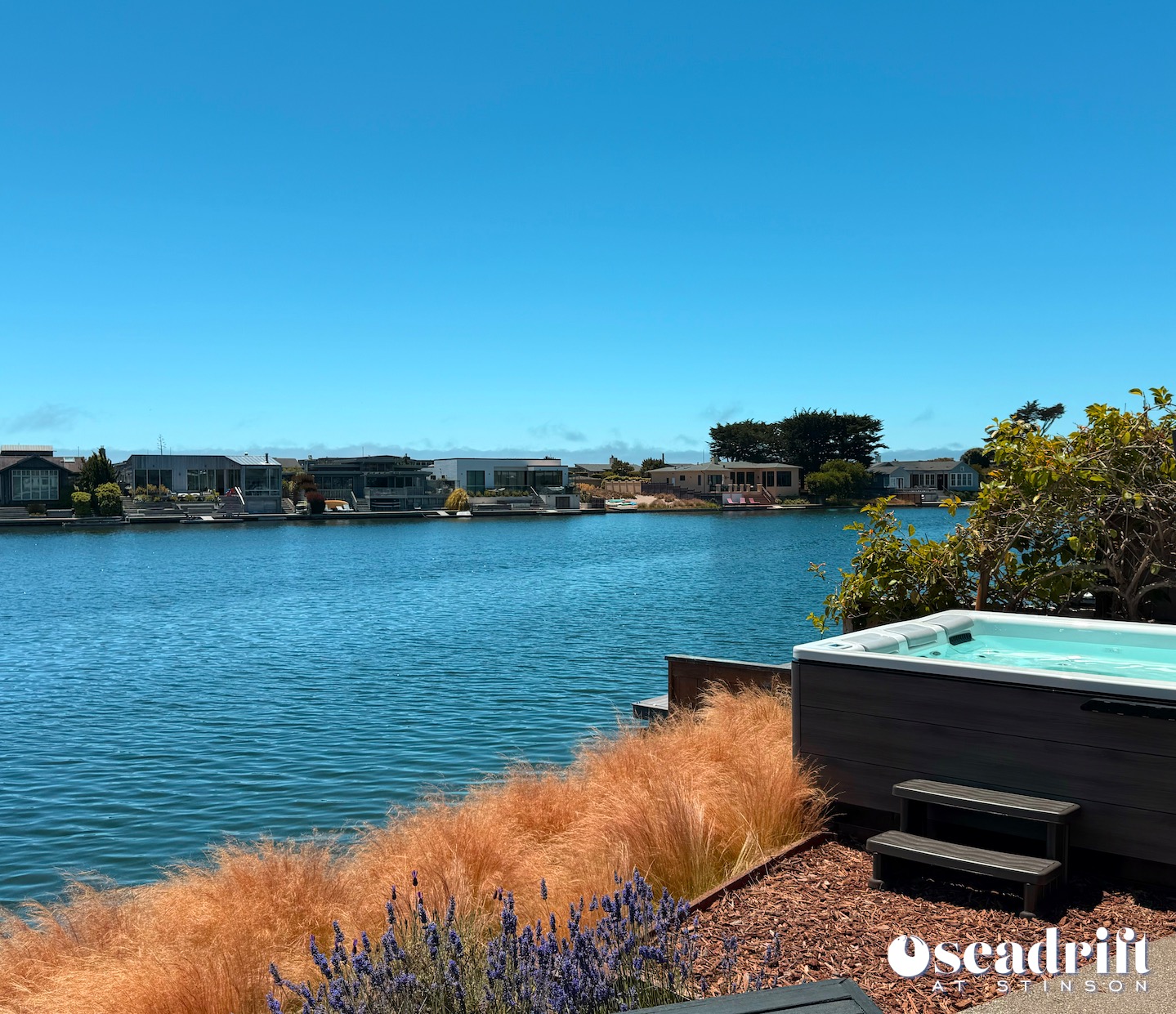 Sweeping views of Seadrift Lagoon and skylights throughout, this house features an open-plan living room with ample, cushy seating – even a full-length window seat perfect to curl up with a book or watch the birds frolicking in the water and a vintage wood stove. The kitchen is fully stocked with premium cooking wares and appliances, including a Breville espresso maker for morning coffee on the deck. No need to bring your own anything! Beautiful Heath tile counters and easy separate access to outdoor dining. Modern oak dining table seats 8 & extends to 12 for special celebrations.