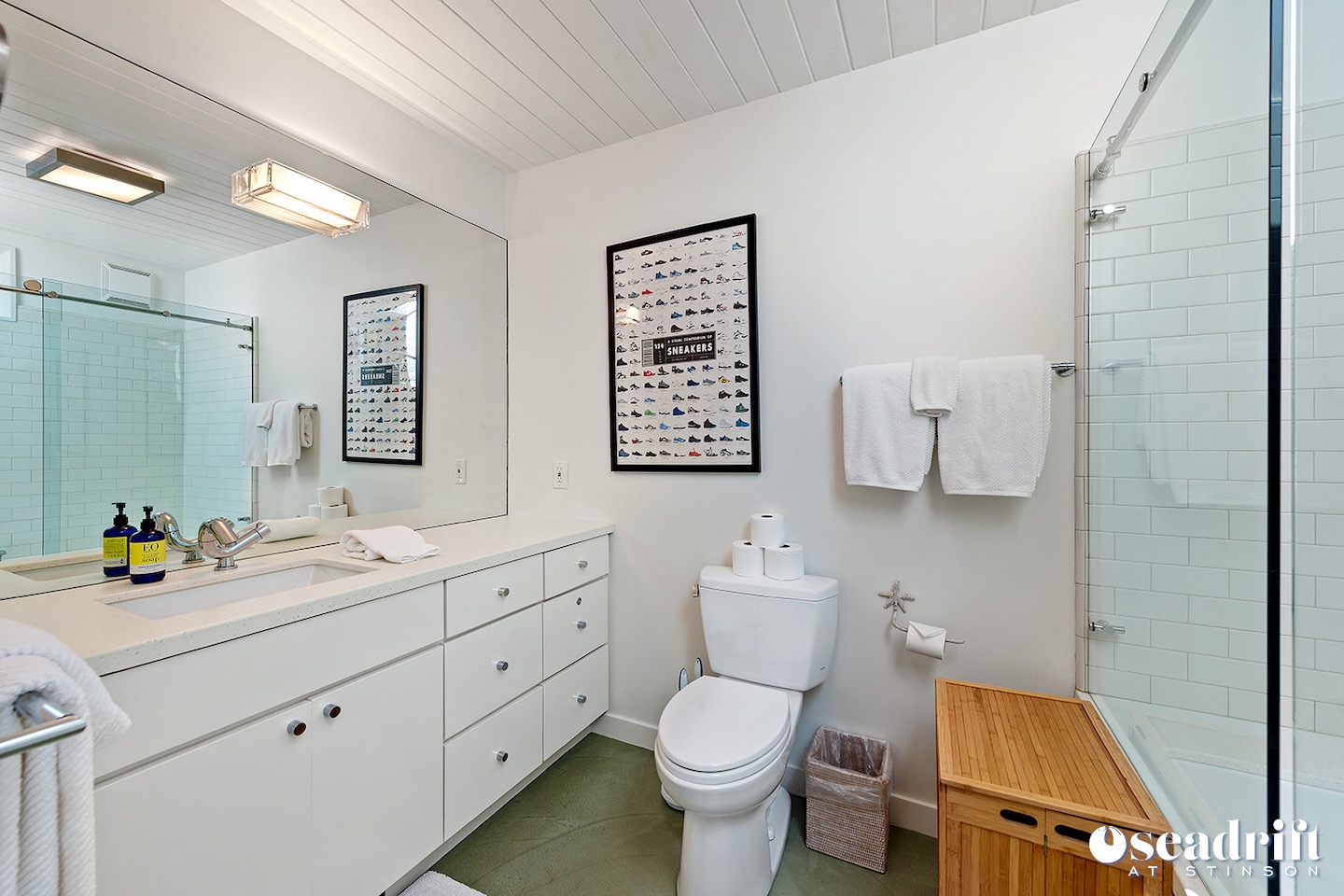 Slip out to the ocean from the slider in your primary bedroom. Snuggle up to a movie from bed and finally slip into sleep to the soothing surf. An en-suite spa like bathroom flooded with natural light.