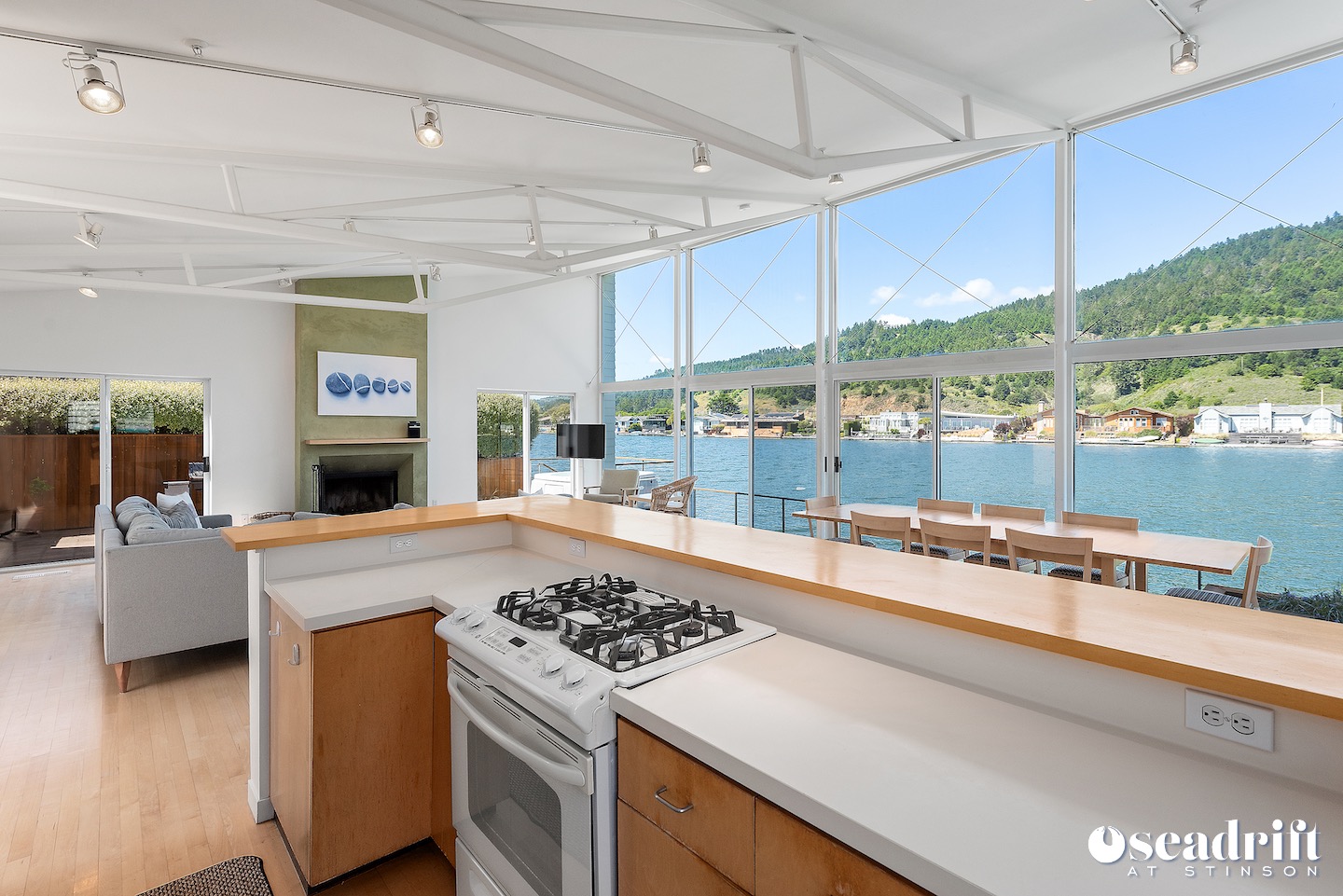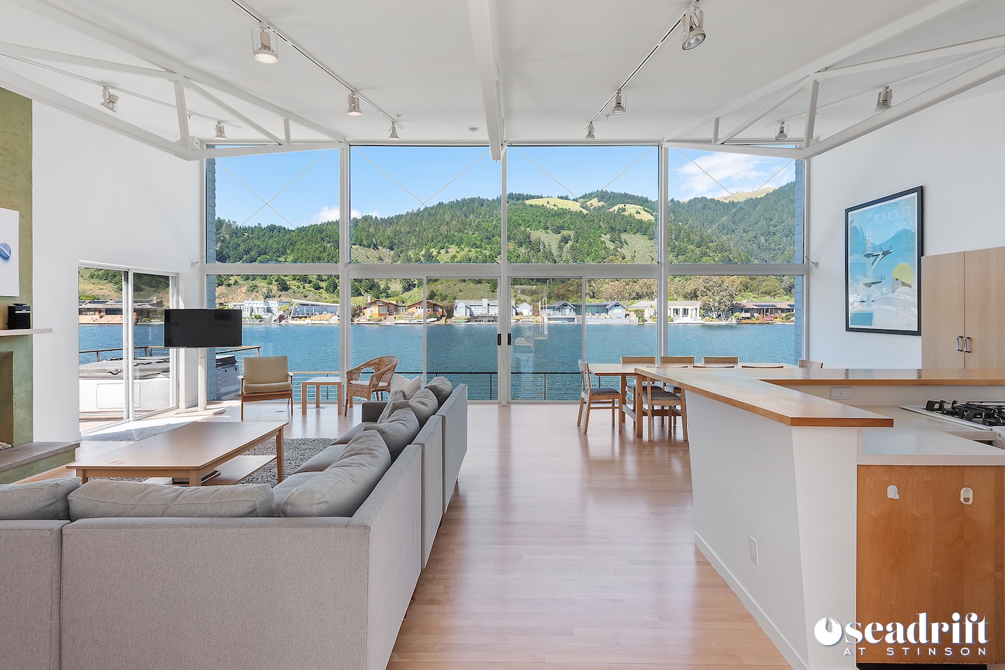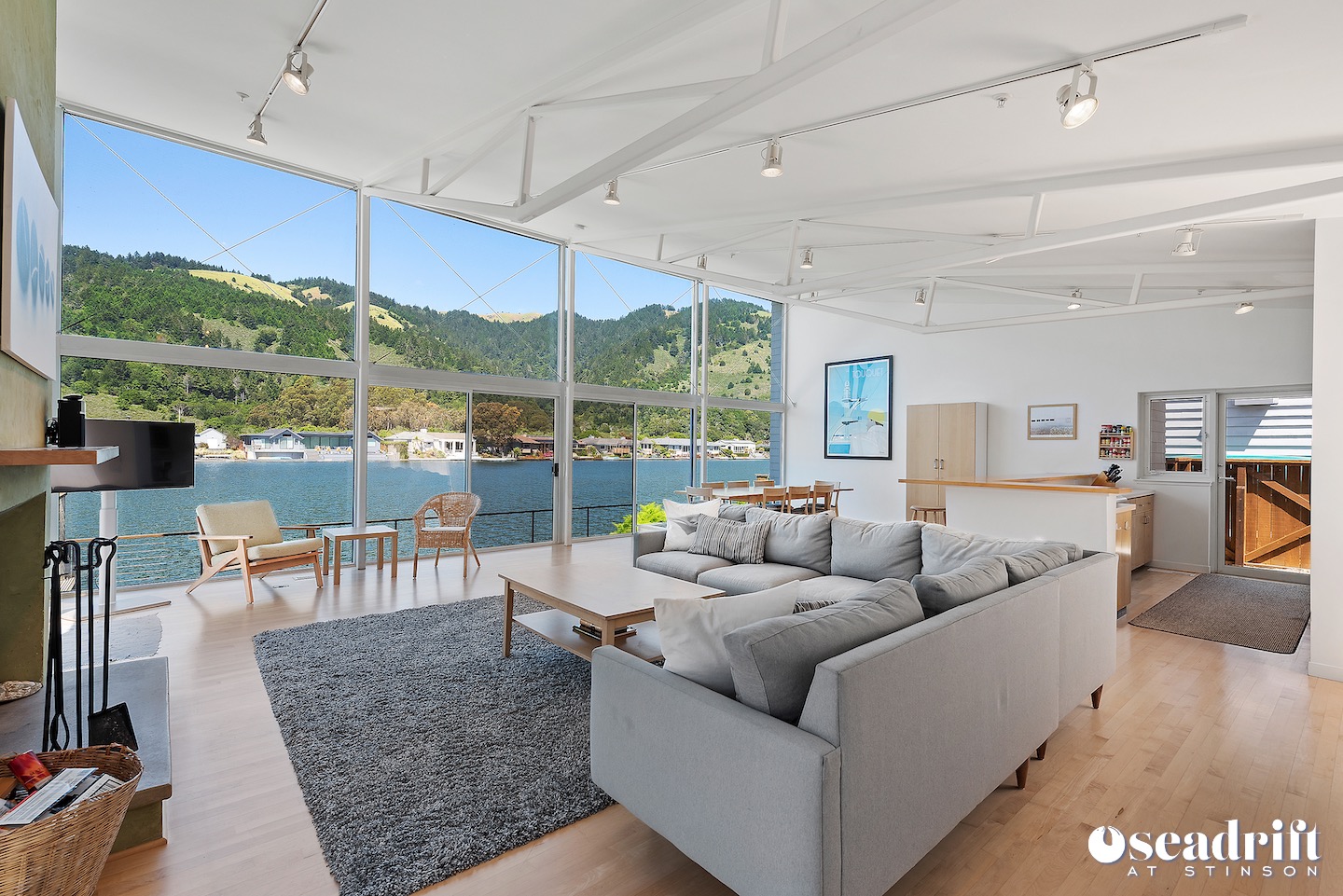Lagoon living and enjoyment in a tranquil setting... Pristine and ready for occupancy, the sun soaked front yard welcomes you into exquisite harmony, balance, and perfection. The bright, modern colors of the house and lush carpet make for a satisfying R&R. As you enter, you are immediately struck by the majestic views of Mount Tamalpais and the Seadrift lagoon. Create seafaring recipes in the open kitchen as you overlook the scenery beyond, and visit with loved ones seated at the counter. An entertainment room and an extensive sectional in ... (sd143) Summer only.