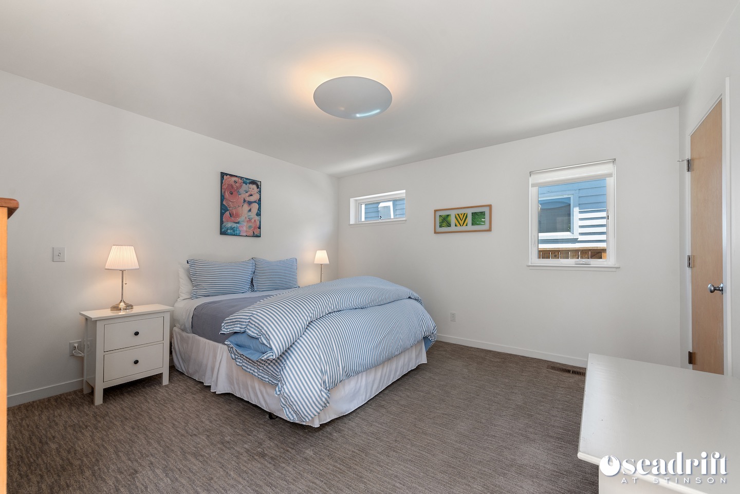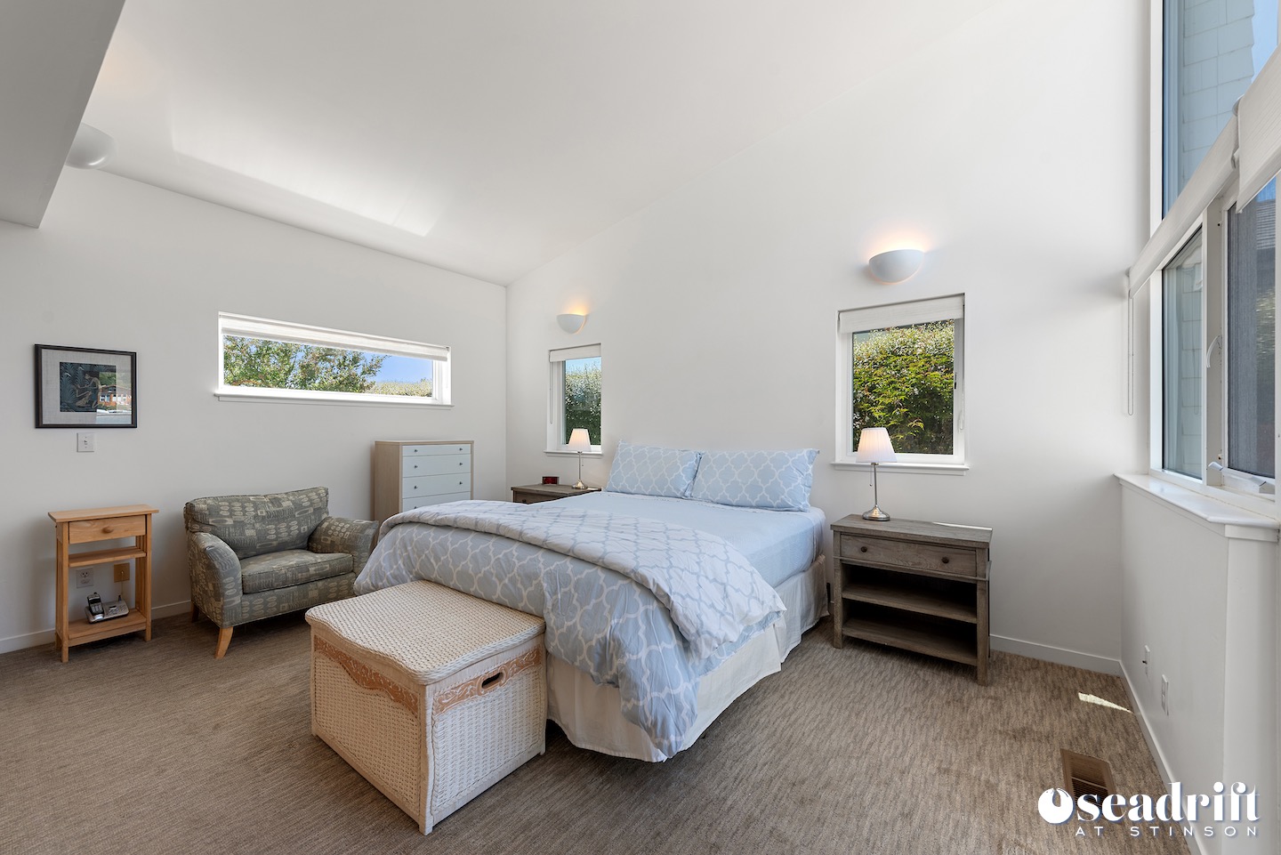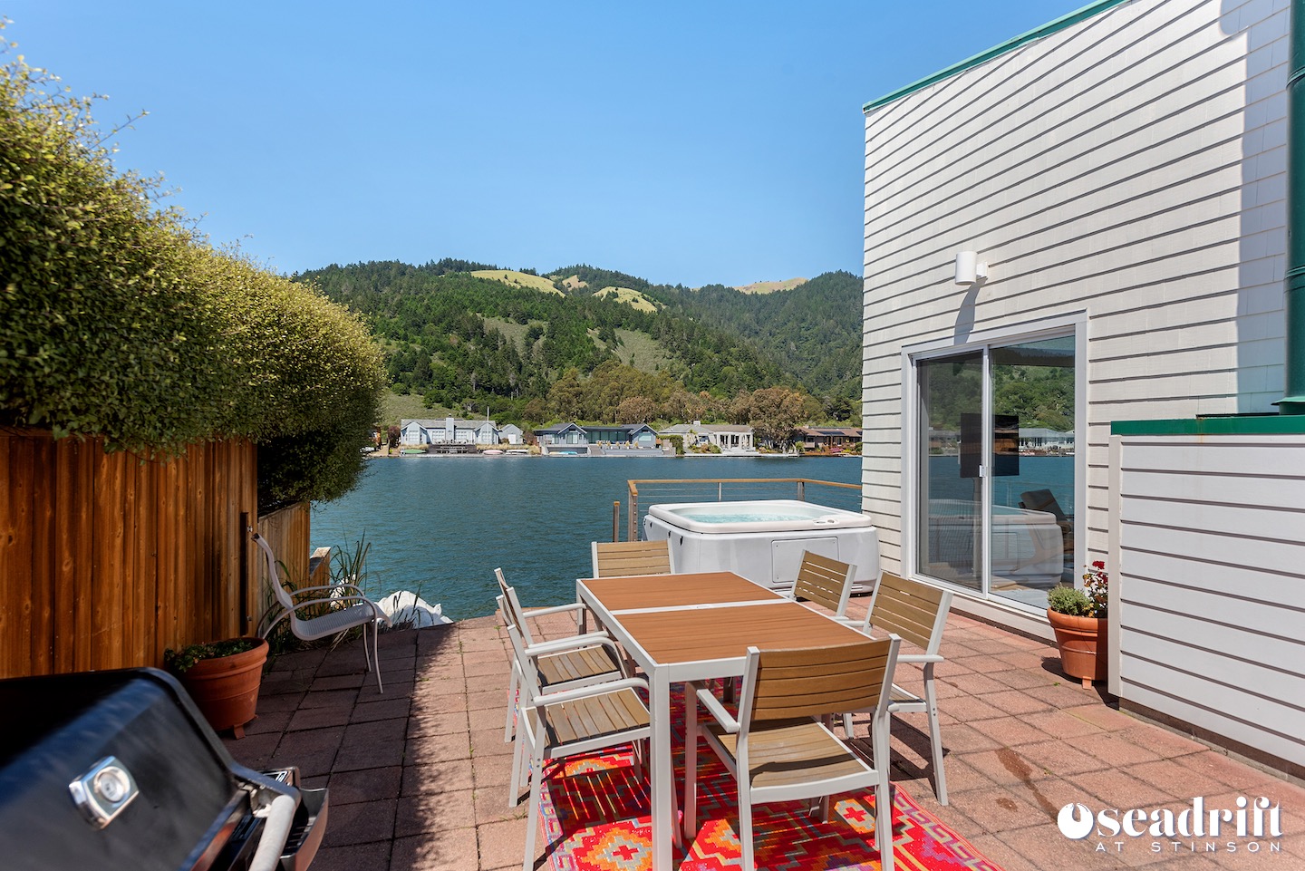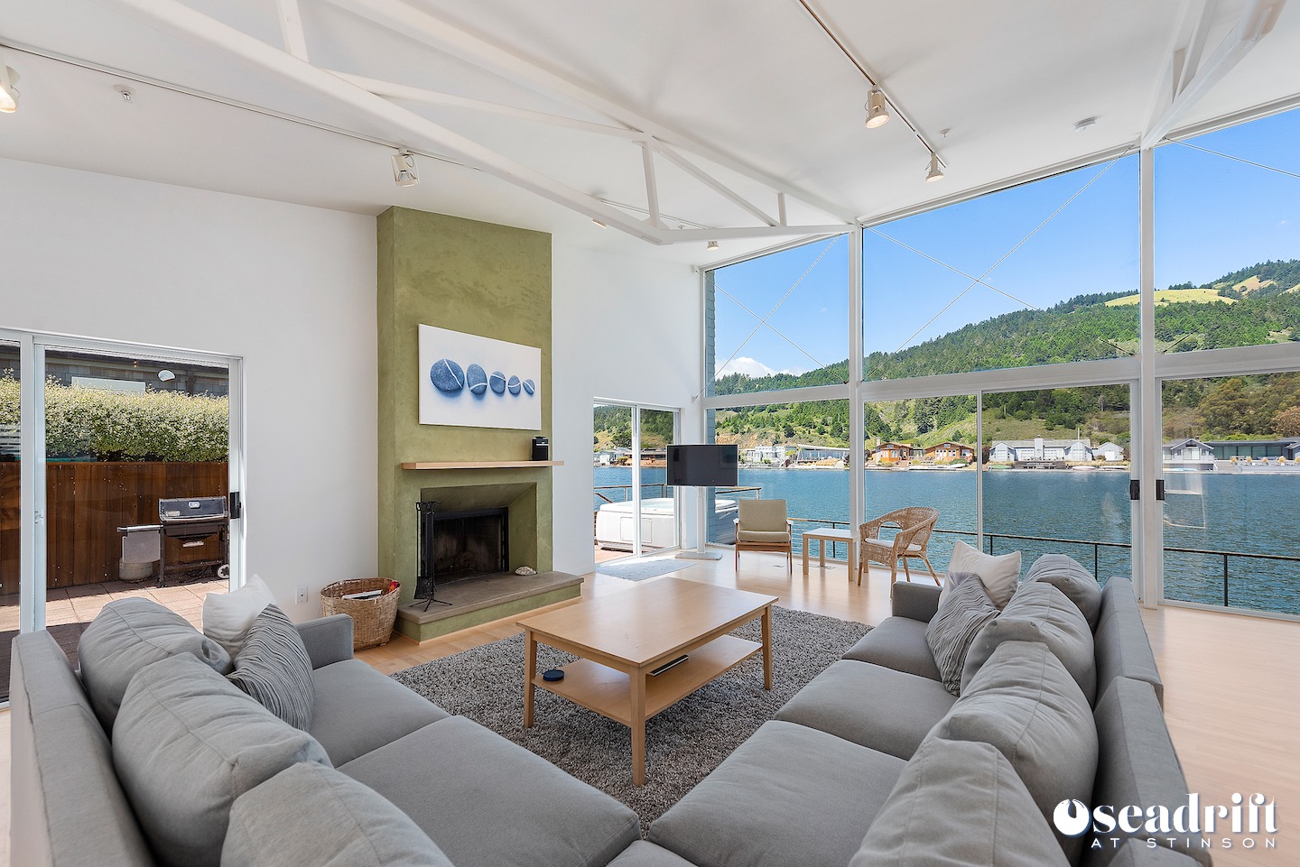 Lagoon living and enjoyment in a tranquil setting... Pristine and ready for occupancy, the sun soaked front yard welcomes you into exquisite harmony, balance, and perfection. The bright, modern colors of the house and lush carpet make for a satisfying R&R. As you enter, you are immediately struck by the majestic views of Mount Tamalpais and the Seadrift lagoon. Create seafaring recipes in the open kitchen as you overlook the scenery beyond, and visit with loved ones seated at the counter. An entertainment room and an extensive sectional in ... (sd143) Summer only.